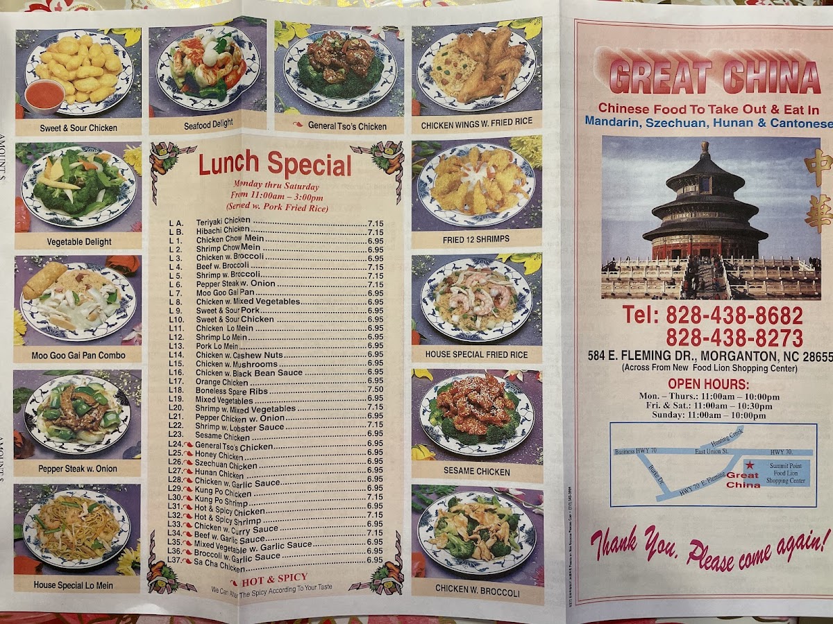 The menu at Great China offers a straightforward and comforting selection of classic Chinese dishes, perfect for casual dining or quick takeout. Whether you're stopping by for a satisfying lunch or picking up dinner after a busy day, the menu serves a variety of hearty plates that fit well with a relaxed and familiar atmosphere.